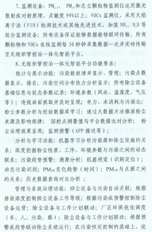 2、2019年10月底前,全市鋼鐵企業全面完成無組織排放治理和監測、無組織排放管、控、治一體化智能平臺建設。