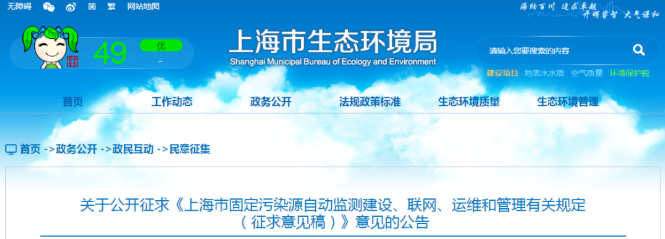 日前,上海市生態環境局對《上海市固定污染源自動監測建設、聯網、運維和管理有關規定》(滬環規〔2017〕9號)進行修訂,已編制完成征求意見稿。